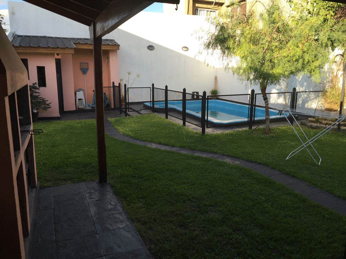 garage cubierto (5.5x3), amplio living comedor (6.3x3.6), dormitorio con baño en suite (3x6), baño, escritorio (4x3.5), cocina comedor (3.9x3.5) dormitorio (3.x3.5), lavadero, galeria con cuarto de herramientas (7.8x3), fondo parquizado (10x8.66), parrilla, baño y piscina (5x3). |