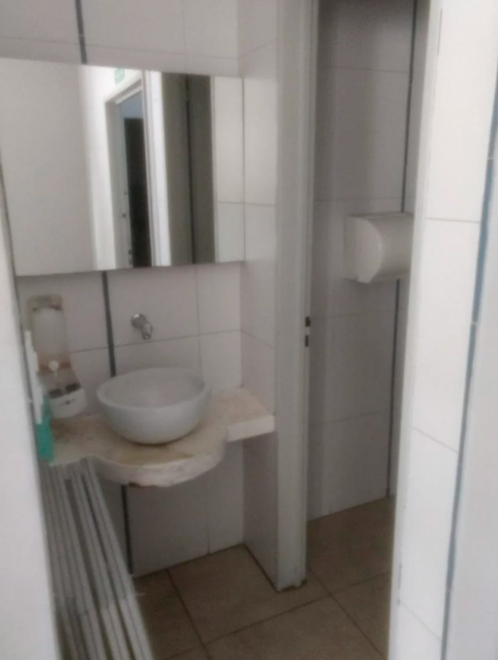 Se accede al local por su fondo a un patio descubierto de 8 metros por 10 metros, es decir, una superficie de 80 metros cuadrados, 2 cortinas una tipo malla con motor eléctrico y la otra con chapa ciega, vidriera con puerta de blindex.